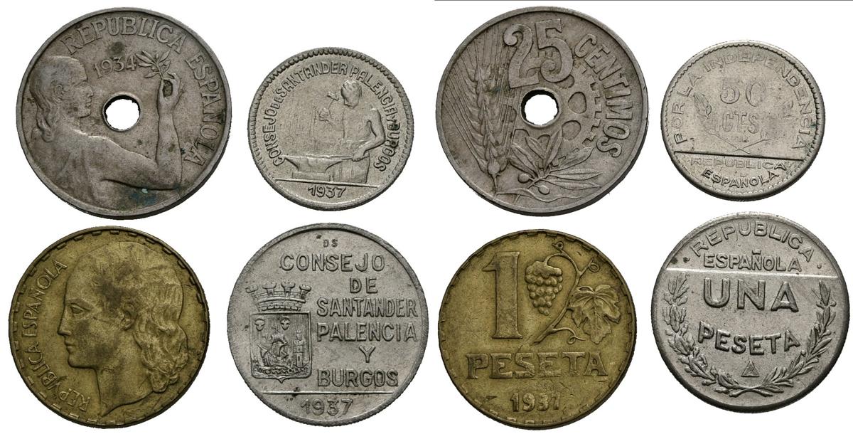 II REPUBLICA y GUERRA CIVIL. Lote compuesto por 4 monedas de diferentes valores, años y cecas. A EXAMINAR.