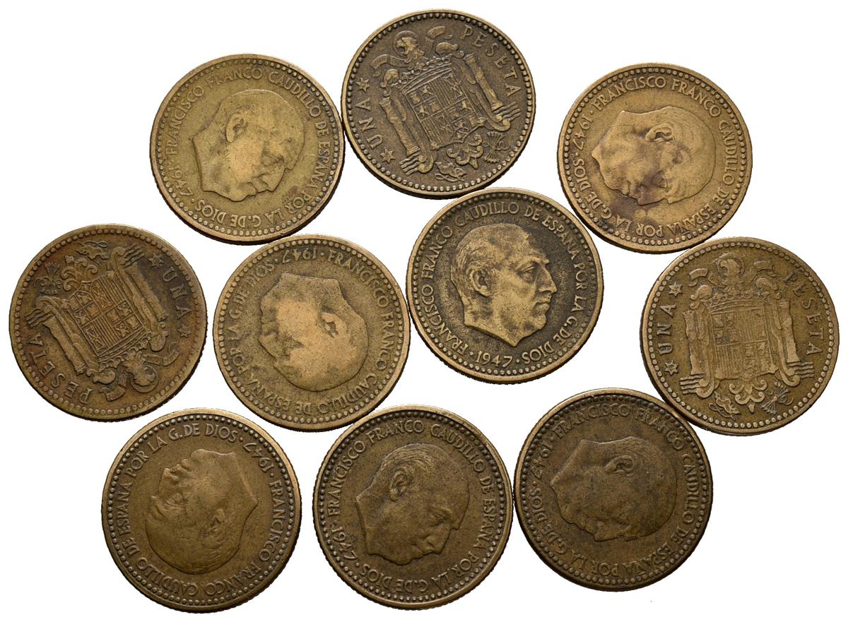 ESTADO ESPAÑOL. Lote compuesto por 10 monedas de 1 Peseta de 1947 con diferentes estrellas. A EXAMINAR.