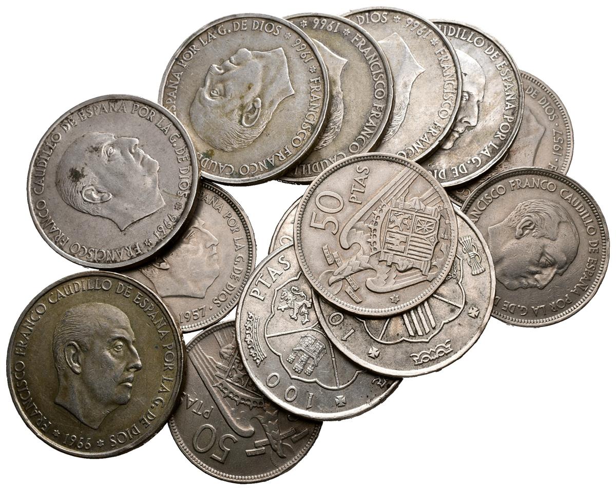 ESTADO ESPAÑOL. Lote compuesto por 14 monedas de 50 y 100 Pesetas de los años 1957 y 1966, diferentes estrellas. A EXAMINAR.