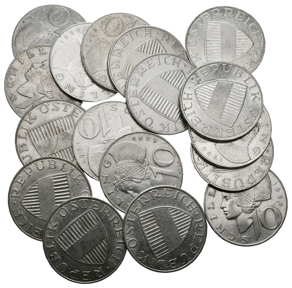 MONEDAS EXTRANJERAS. Lote compuesto por 19 monedas de 10 Schillings de Austria de diferentes años. A EXAMINAR.