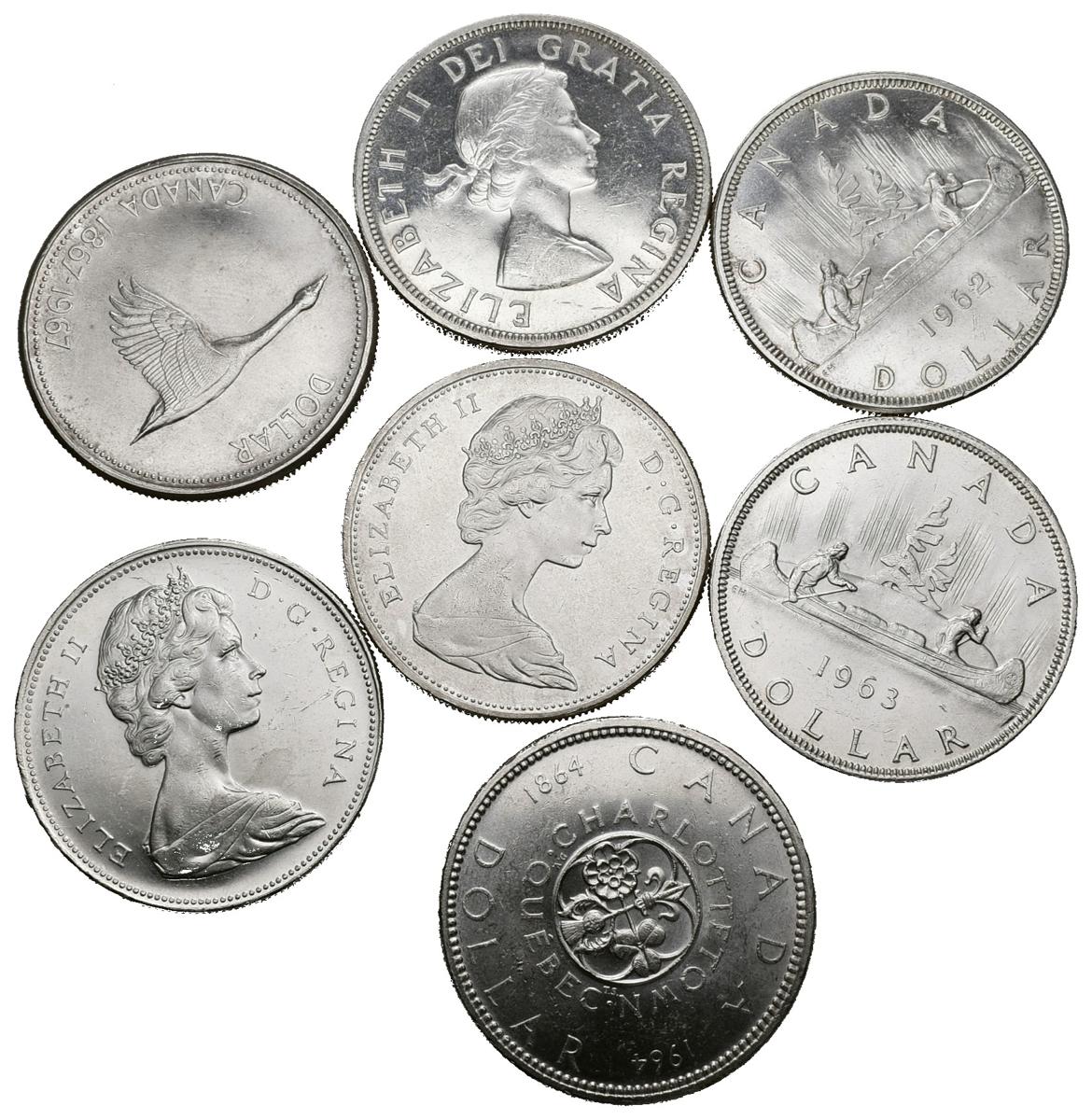 MONEDAS EXTRAJERAS. Lote compuesto por 7 monedas de 1 Dollar de Canadá de diferentes años. A EXAMINAR.