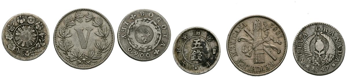 MONEDAS EXTRANJERAS. Lote compuesto por 3 monedas de diferentes países, valores y años. A EXAMINAR.