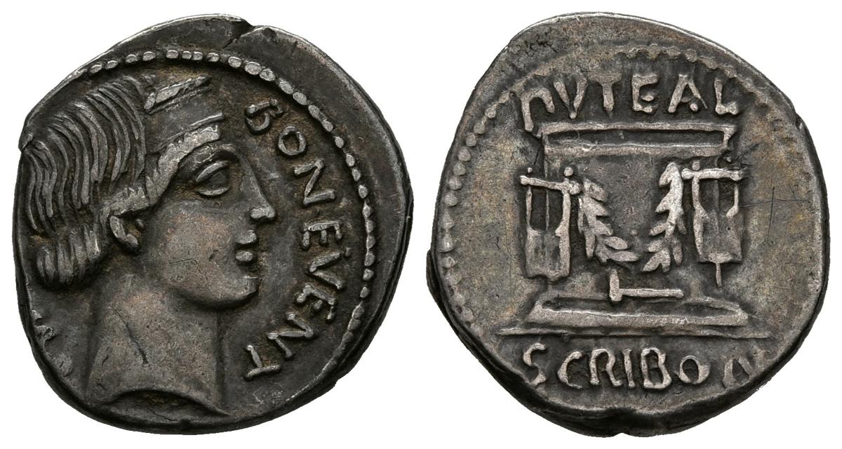 GENS SCRIBONIA. Denario. (Ar. 3,92g/19mm). 62 a.C. Roma. (Crawford 416/1a; FFC 1102). MBC+. Bonita pátina oscura.