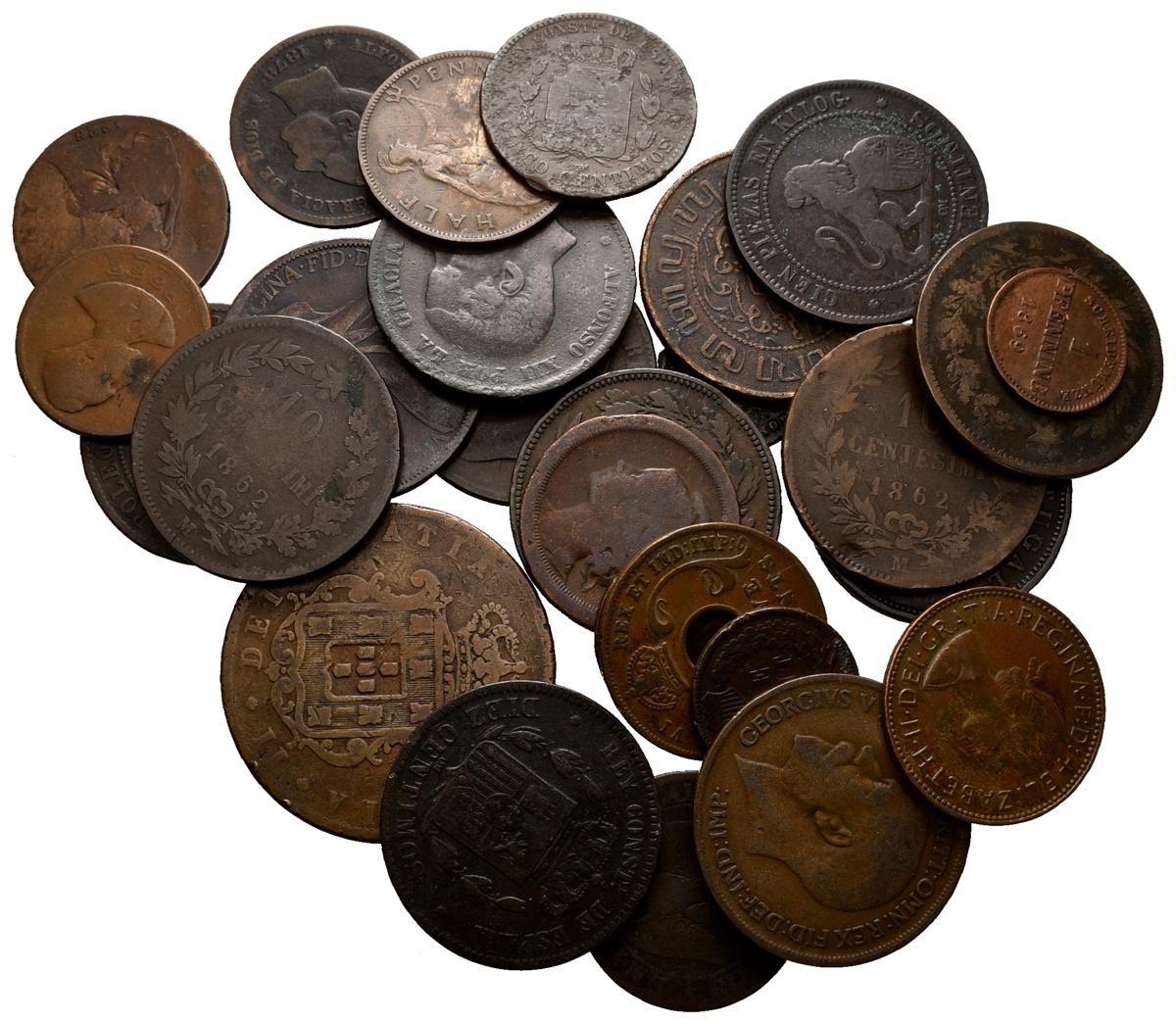 Lote compuesto por 27 monedas de cobre de diferentes épocas. A EXAMINAR.