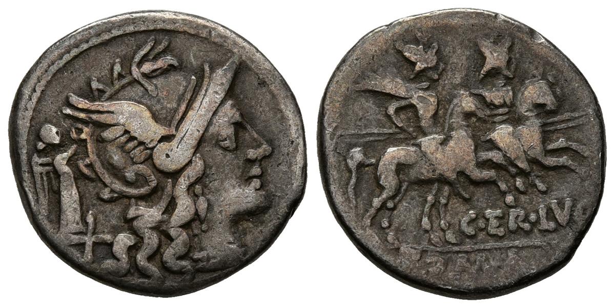 GENS TERENTIA. Denario. (Ar. 3,77g/14mm). 147 a.C. Roma. (Crawford 217/1; FFC 1140). MBC-.