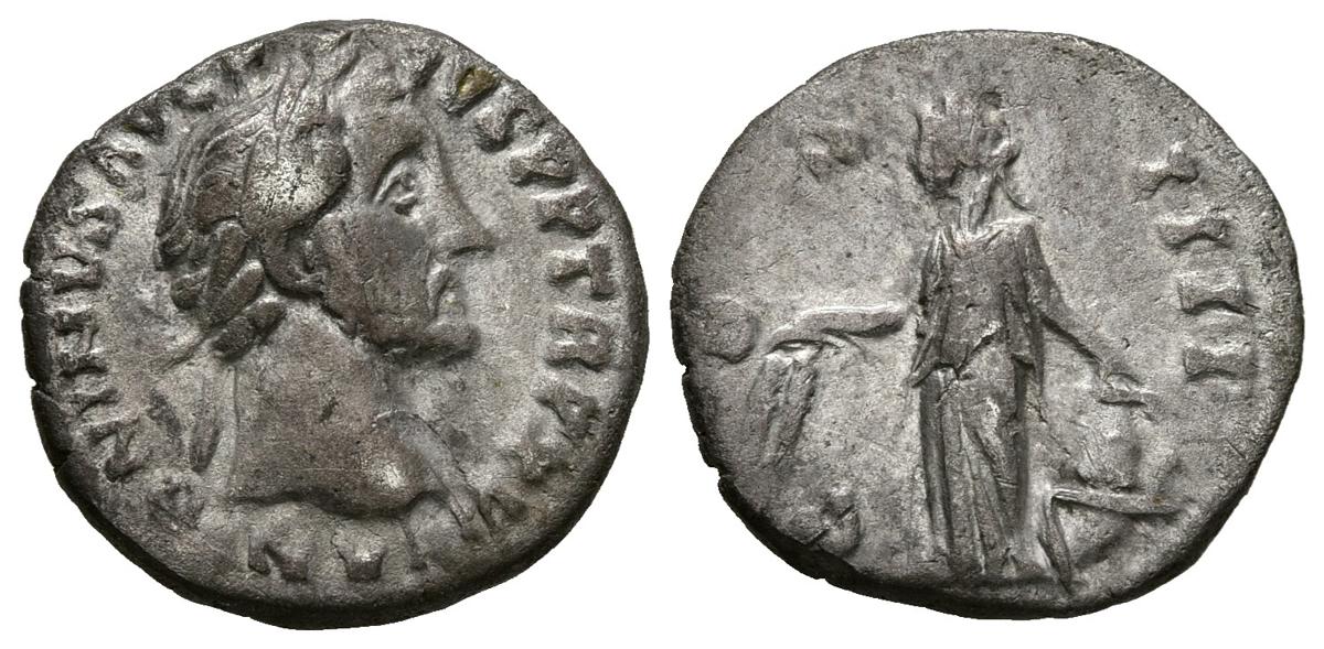 ANTONINO PIO. Denario. (Ar. 3,38g/17mm). 155 d.C. Roma. (RIC 239). MBC.