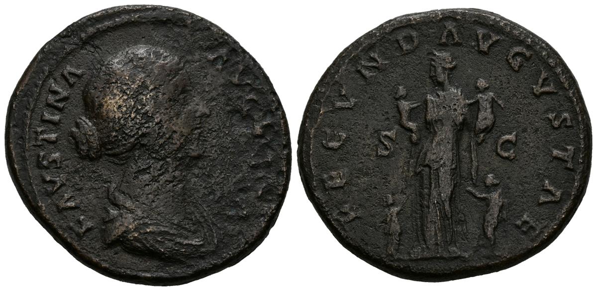FAUSTINA II. Sestercio. (Ae. 20,80g/33mm). 160-161 d.C. Roma. (RIC 1635). MBC. Erosiones.