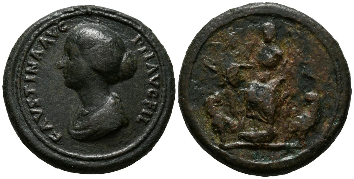 FAUSTINA II. Medallón. (Ae. 47,13g/39mm). 161-175 d.C. Roma. (Gnecchi 21, pl. 68, 7; Cohen 295). MBC-. Rarísimo ejemplar.