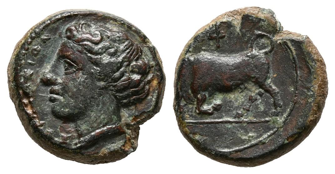 SICILIA, Siracusa. Ae12. (Ae. 1,85g/12mm). 317-289 a.C. (SNG Copenhagen 763 var?). Variante: Letra en reverso. MBC.Ex Gerhard Hirsch Nachfolger 296, Nº 1595.