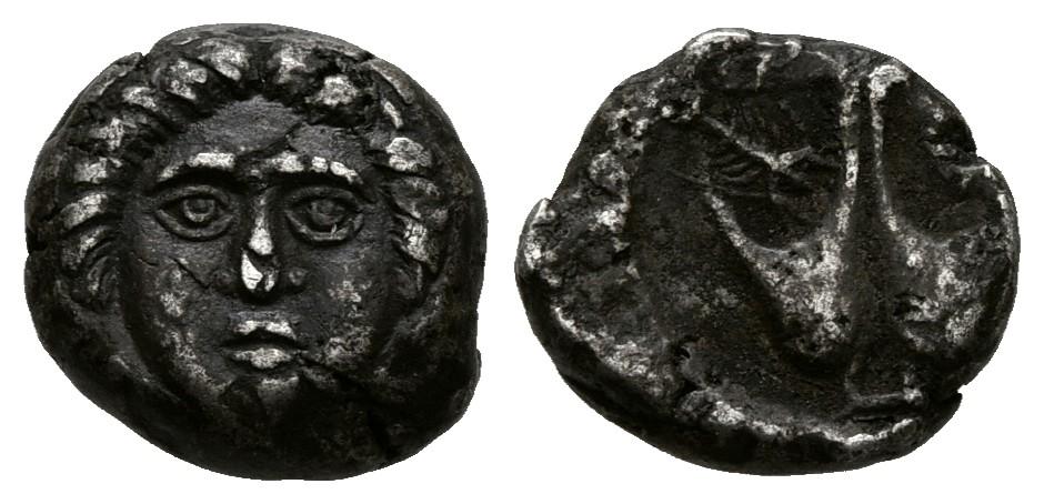 TRACIA. Apolonia Pontica. Dióbolo (Ar. 1,45g/10mm). 400-350 a.C. (Cy 1547; Topalov, Apollonia 56). MBC/MBC-. Reverso descentrado.