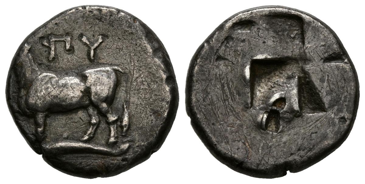 TRACIA, Bizantion. Dracma. (Ar. 5,15g/18mm). 387-340 a.C. (SNG BM Black Sea 9). MBC. Repasada.