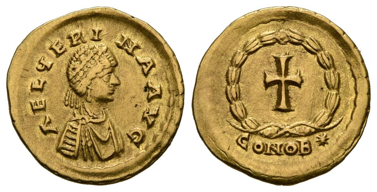 AELIA VERINA. Tremissis. (Au. 1,46g/15mm). 457-474 d.C. Constantinopla. (RIC 615). EBC-. Insiginificantes rayitas, aun así espectacular ejemplar.