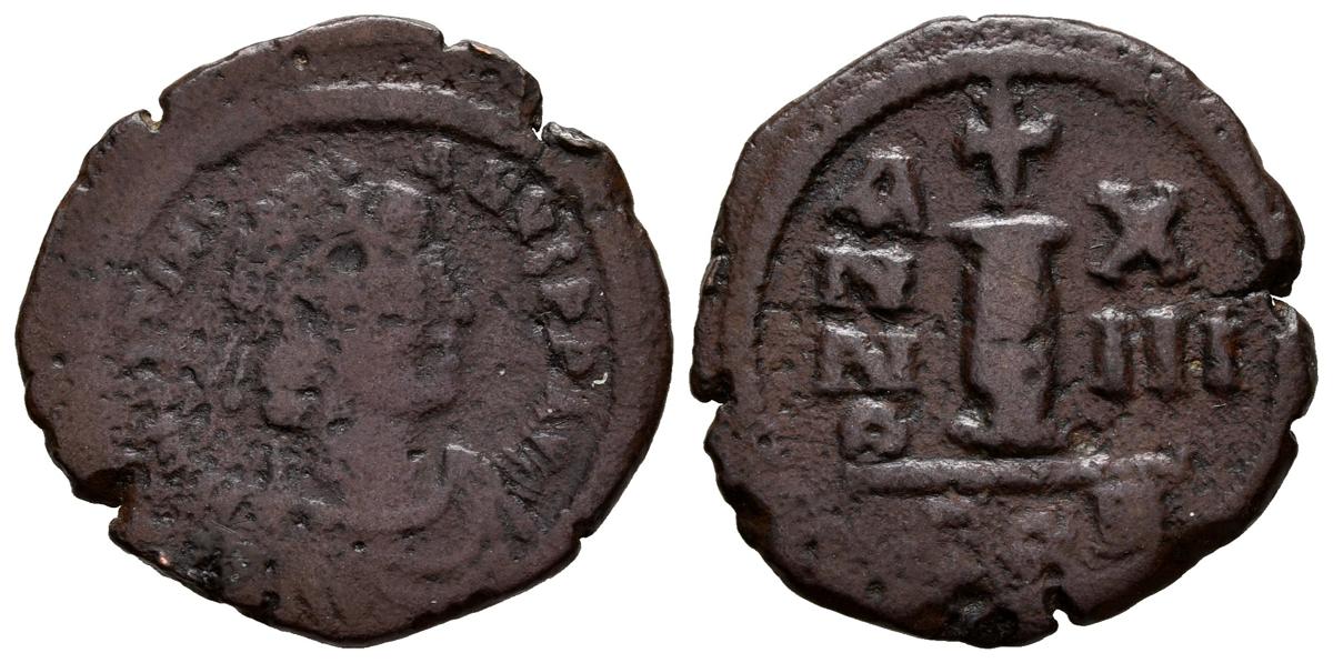 JUSTINIANO I. Decanummiun. (Ae. 4,21g/19mm). 541-542 d.C. (Año 15). Cícico. (Sear 167). BC.