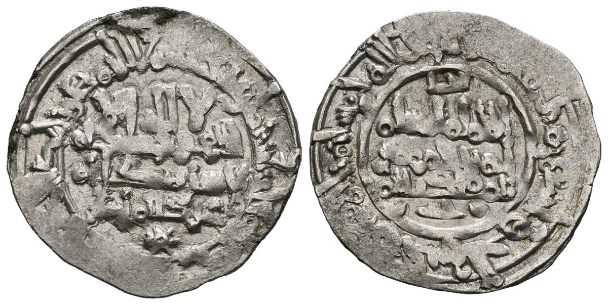 CALIFATO DE CORDOBA. Hisham II. Dirham. (Ar. 2,87g/23mm). 394H. Madinat Fas (Fez). (Vives 634/635). Citando a al-Hayib y Abd al Malik. Distribución similar al 395H que vives no cita en este año. MBC+. Rara