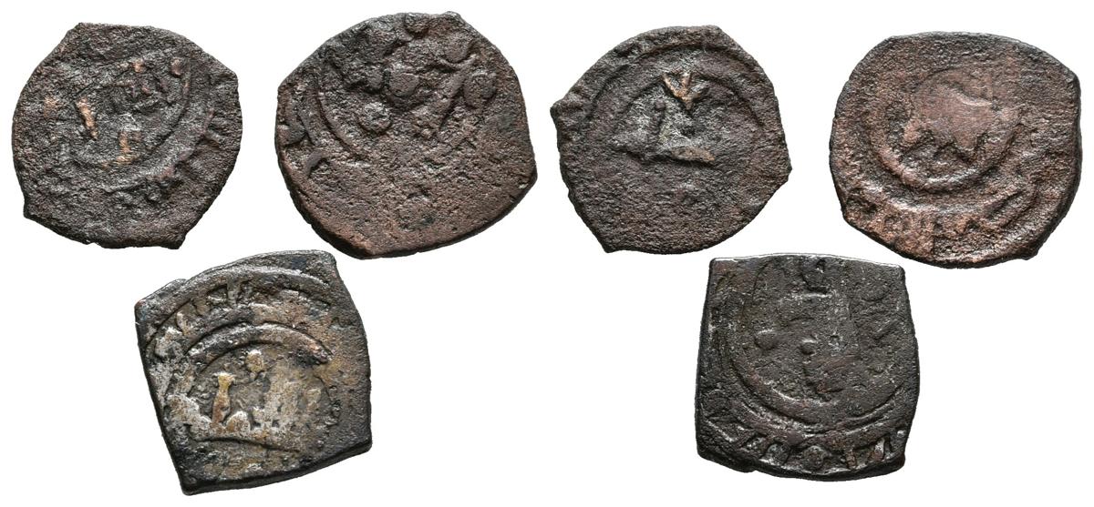 TAIFA DE CORDOBA. Conjunto de 3 fracciones de Dirham. Banu Djahwar. 422-462 H. A nombre del Imam Abd Allah. Frochoso "Las monedas de los Banu Yahwar de Córdoba", pág. 200; Medina 117. Ve. A EXAMINAR.