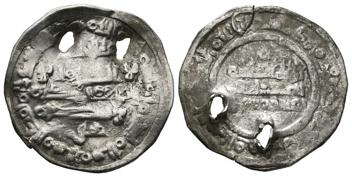 TAIFAS HAMMUDIES. Al-Qasim ibn Hammud. Dirham (Ar. 3,00g/24mm). 409H. Madinat Sabta (Ceuta). (Vives 737; Prieto 72). MBC. Dos perforaciones.