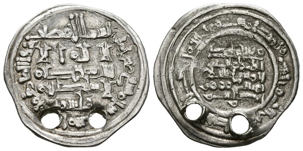 TAIFAS HAMMUDIES. Yahya ibn Ali al-Mutali. Dirham (Ar. 2,85g/23mm). 419H. Madinat Sabta (Ceuta). (Vives 767; Prieto 84b). Citando Qasim en IA. MBC+. Dos perforaciones.