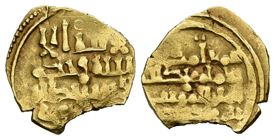 TAIFA DE SEVILLA. Muhammad ibn Abbad al-Mutamid. Fracción de Dinar. (Au. 1,01g/12mm). (Vives 972, Prieto 419b). MBC+. Con recorte.