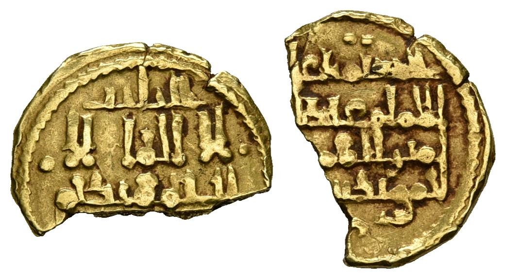 TAIFA DE SEVILLA. Muhammad ibn Abbad al-Mutamid. Fracción de Dinar. (Au. 0,85g/9,1mm). (Vives 958, Prieto 412j). MBC. Con recorte.