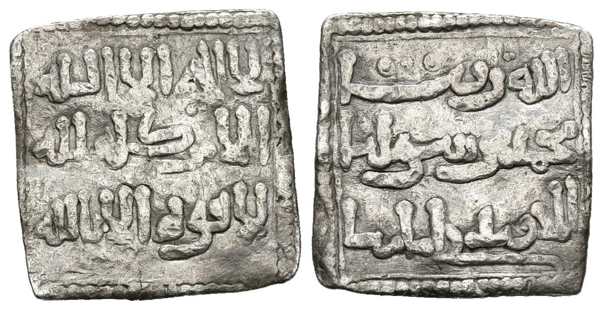 ALMOHADES. Anónimo. Dirham. (Ar. 1,53g/16mm). Sin Ceca. (Vives 2088, Hazard 1101). Variante con escritura cúfica. MBC.