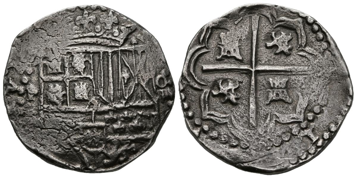 FELIPE II (1556-1598) o FELIPE III (1598-1621). 4 Reales (Ar. 13,39g/30mm). S/D. Potosí. (Cal-2019-tipo 160/148). Ensayador no visible. MBC-.