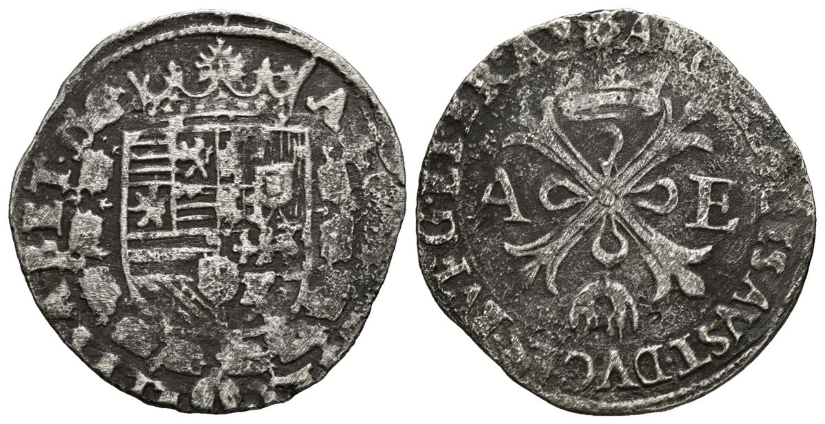 ALBERTO e ISABEL (1598-1621). 1 Real (1/8 de Patagón). (Ar. 2,37g/25mm). S/D. Amberes. (Vanhoudt-595AN). MBC.