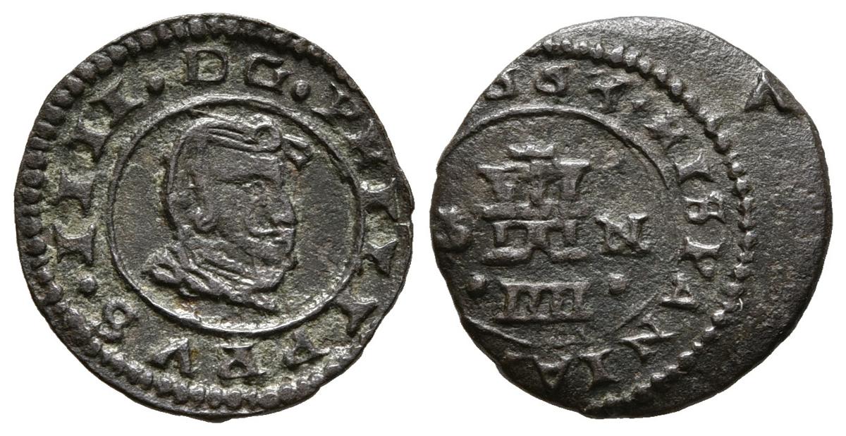 FELIPE IV (1621-1665). 4 Maravedís. (Ae. 1,09g/15mm). 1661. Madrid Y. (Cal-2019-225). Busto rectificado sobre otro busto invertido. MBC. Rara