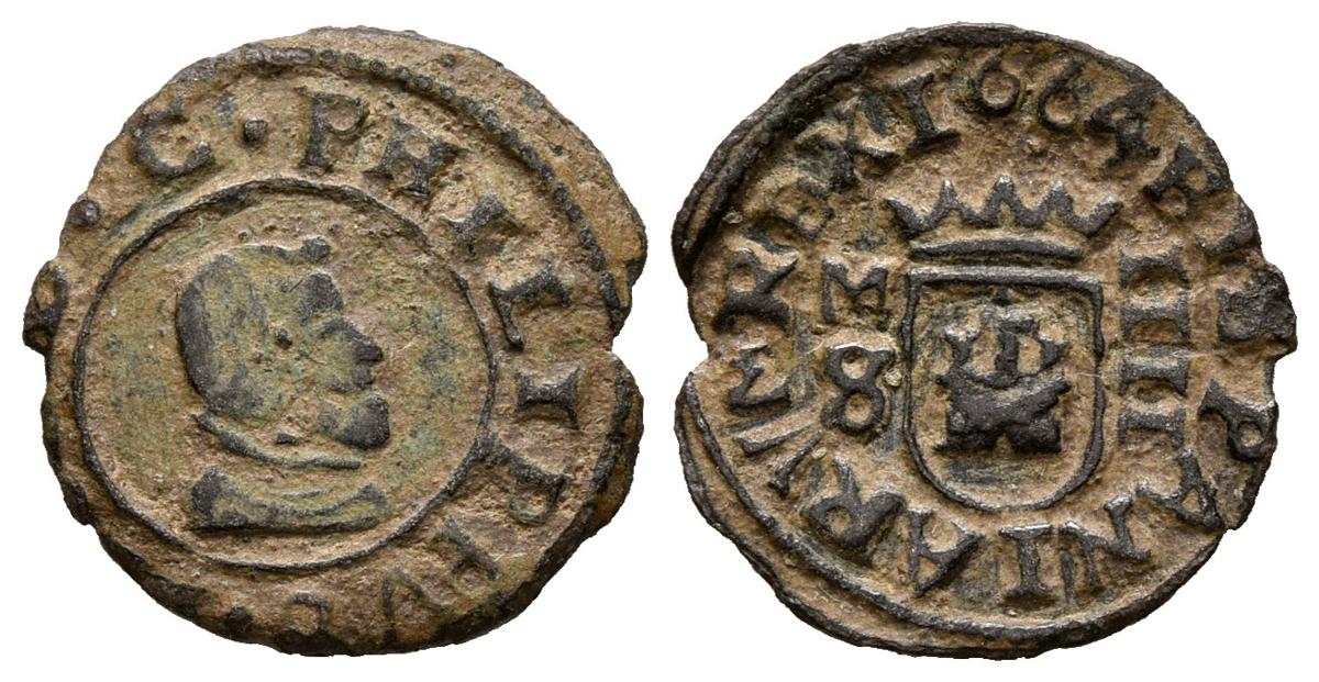 FELIPE IV (1621-1665). 4 Maravedís. (Ae. 0,83g/14mm). 1664/3. Madrid S. (Cal-2019-240). MBC. Rara.