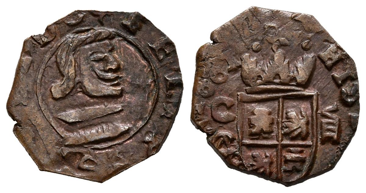 FELIPE IV (1621-1665). 8 Maravedís. (Ae. 1,28g/14mm). 1661. Cuenca CA. Falsa de época. (J. S. pág. 406). Acuñada a martillo. MBC+.