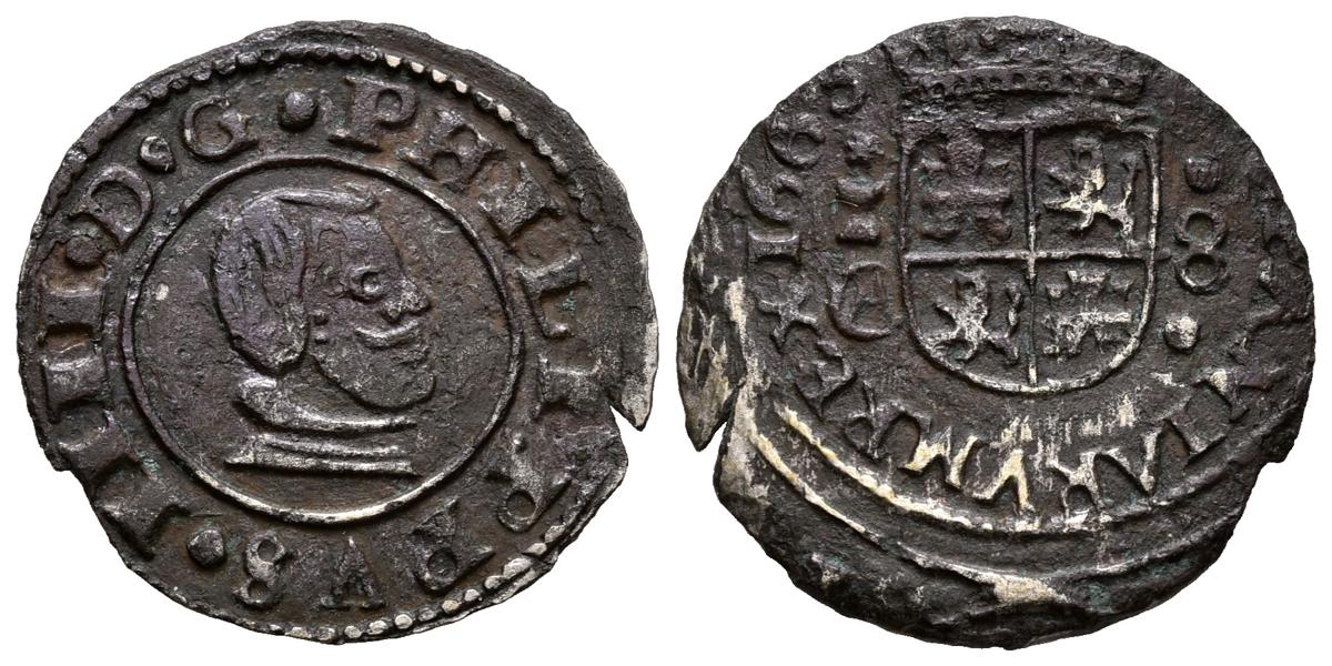 FELIPE IV (1621-1665). 8 Maravedís. (Ve. 1,75g/21mm). 1663. Cuenca CA. (Cal-2019-331). MBC-.