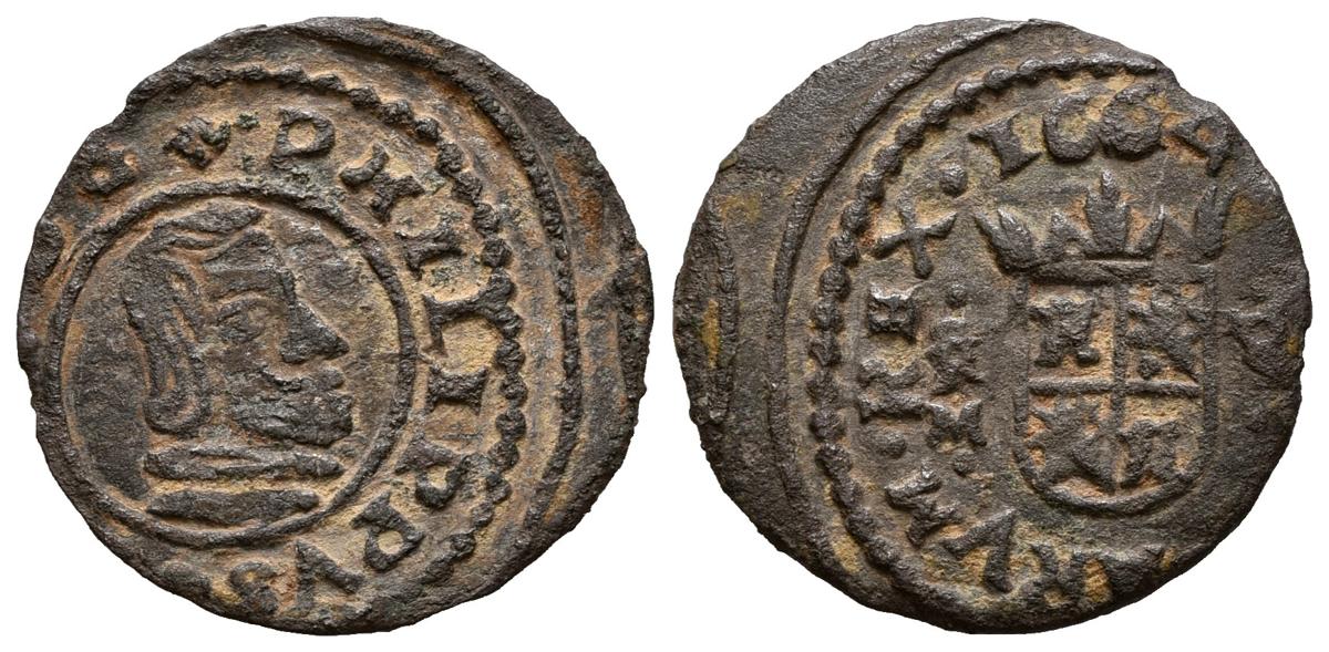 FELIPE IV (1621-1665). 8 Maravedís. (Ae. 1,51g/20mm). 1664. Trujillo M. (Cal-2019-425). MBC-.
