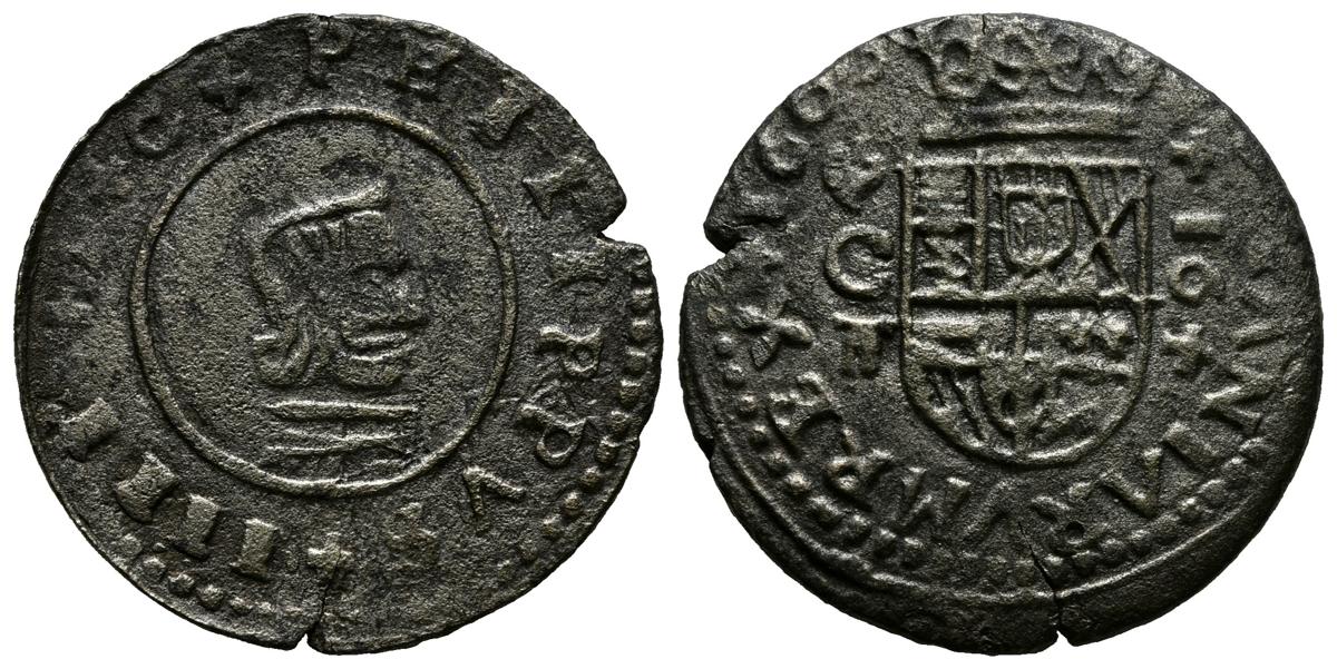 FELIPE IV (1621-1665). 16 Maravedís. (Ve. 4,32g/26mm). 1664. Córdoba T. Falsa de época, sin M bajo escudo. (J. S. pág 384). MBC-.