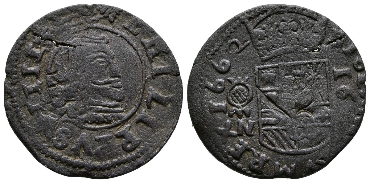 FELIPE IV (1621-1665). 16 Maravedís. (Ae. 3,81g/25mm). 1662. Granada N. Falsa de época (J. S. pág 413). MBC-.