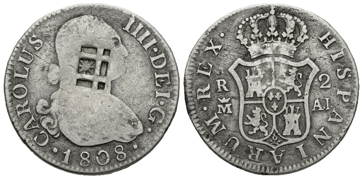 CARLOS IV (1788-1808). 2 Reales (Ar. 5,66g/26mm). 1808. Madrid (Cal-2019-619). Resello Vique. MBC-.