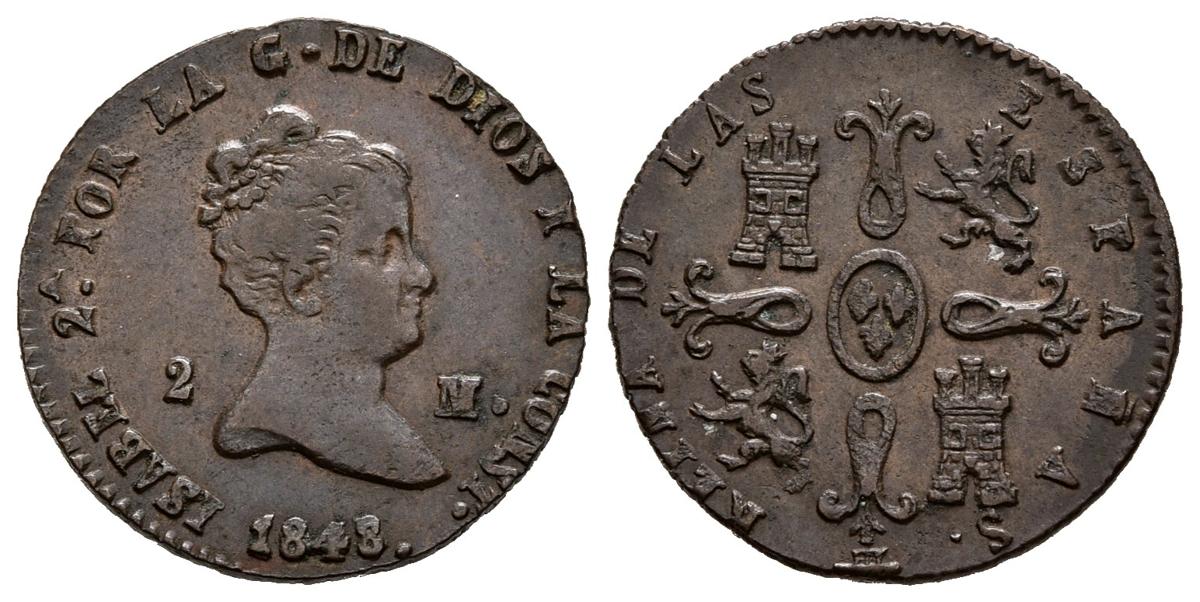 ISABEL II (1833-1868). 2 Maravedís. (Ae. 2,15g/18mm). 1848. Segovia. (Cal-2019-60). EBC-.