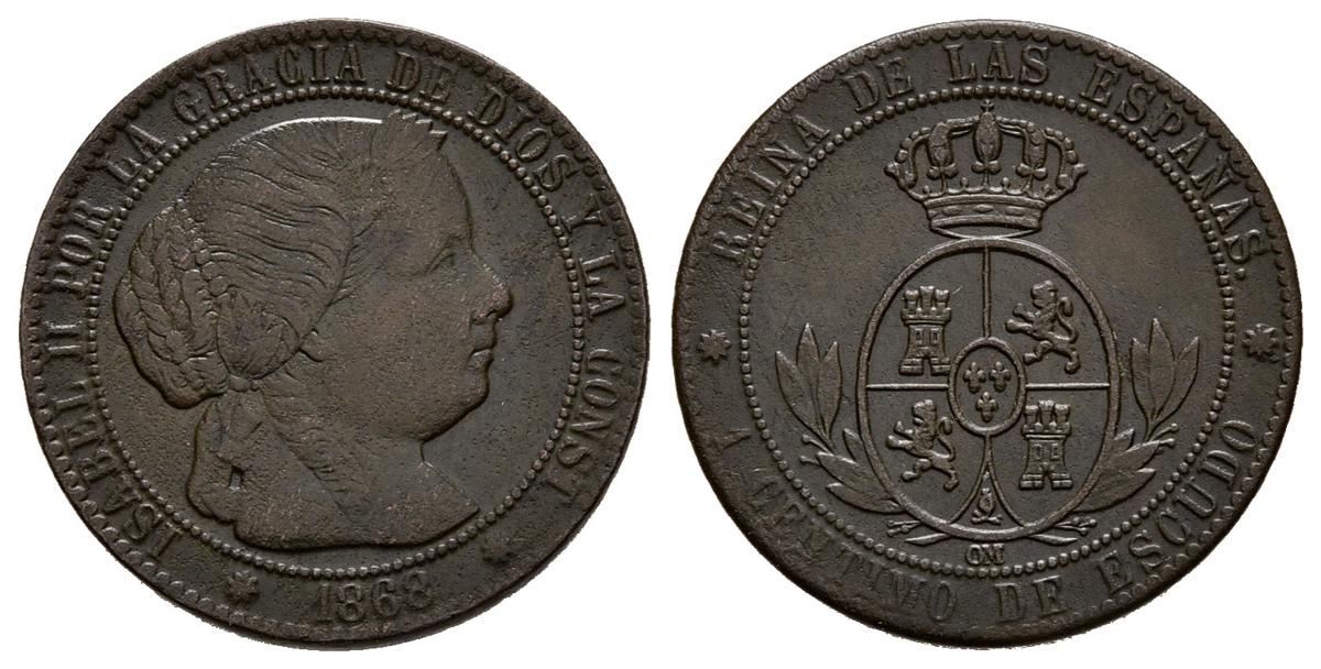ISABEL II (1833-1868). 1 Céntimo de Escudo. (Ae. 2,55g/18mm). 1868. Barcelona. (Cal-2019-216). EBC-. Preciosa tonalidad.