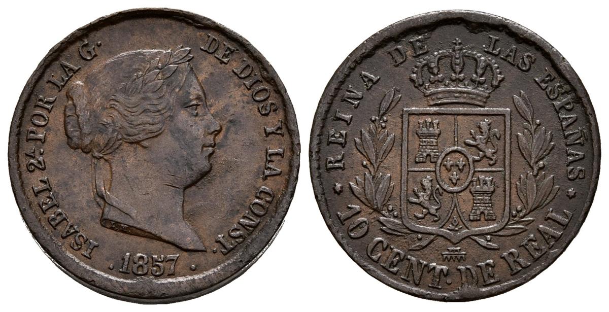 ISABEL II (1833-1868). 10 Céntimos de Real (Ae. 3,83g/20mm). 1857. Segovia. (Cal-2019-173). EBC-. Bonito tono oscuro.