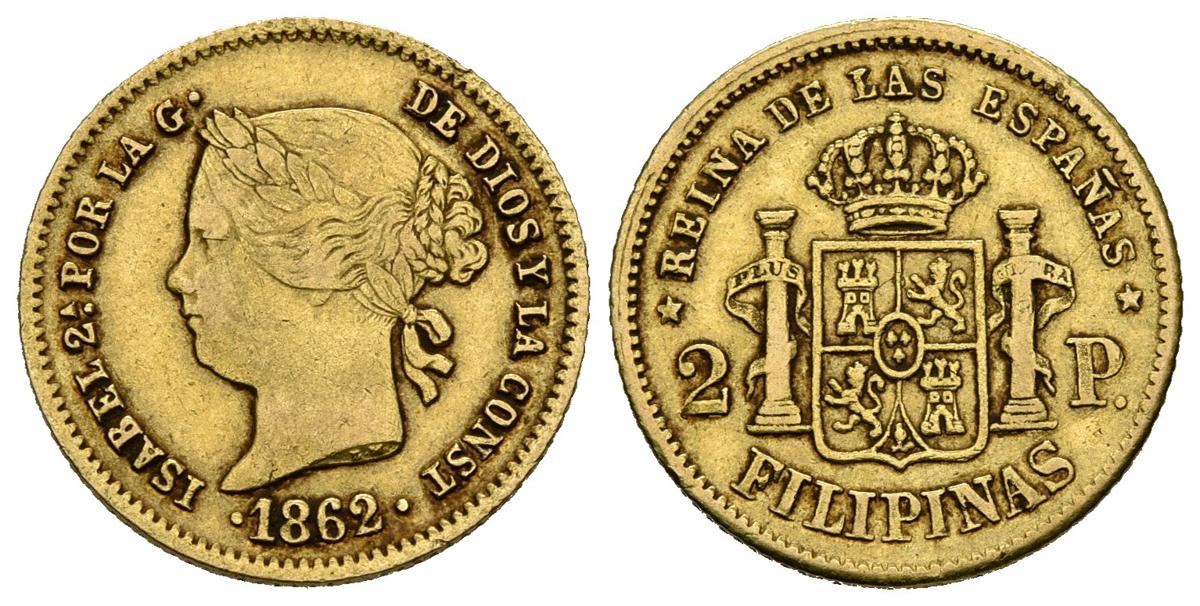 ISABEL II (1833-1868). 2 Pesos (Au. 3,40g/18mm). 1862. Manila. (Cal-2019-838). MBC.