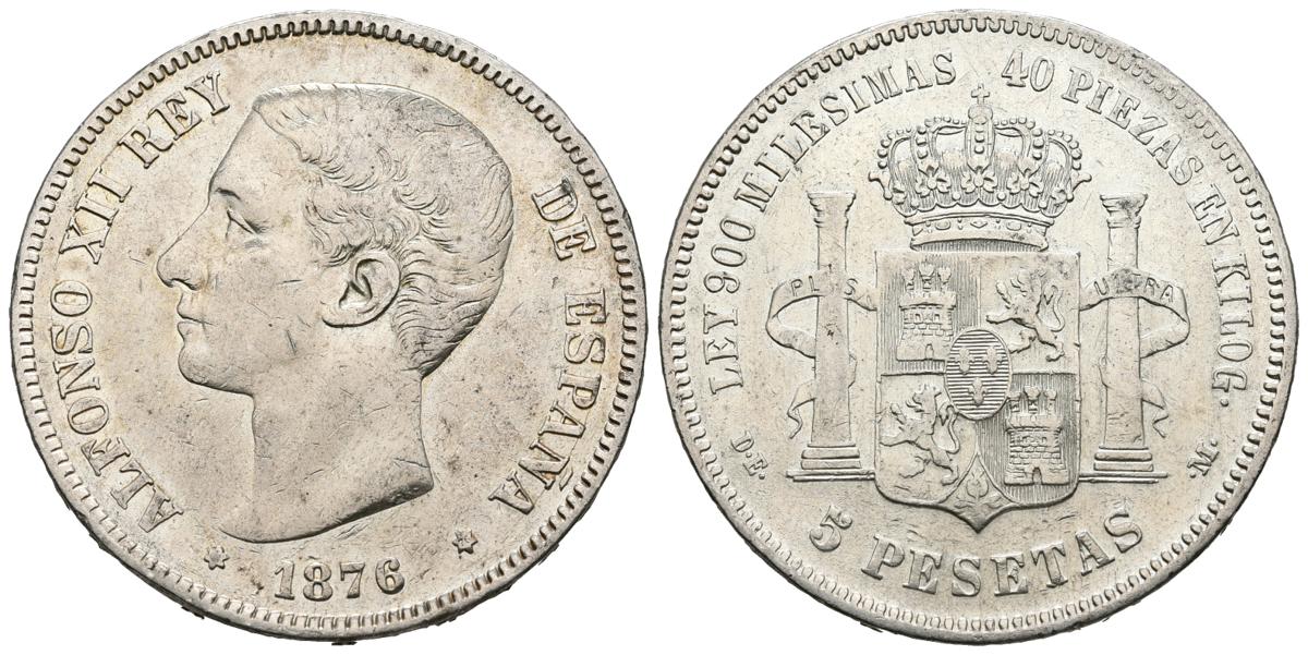 ALFONSO XII (1874-1885). 5 Pesetas. (Ar. 24,75g/37mm). 1876 *18-76. Madrid DEM. (Cal-2019-37). MBC. Marquitas.