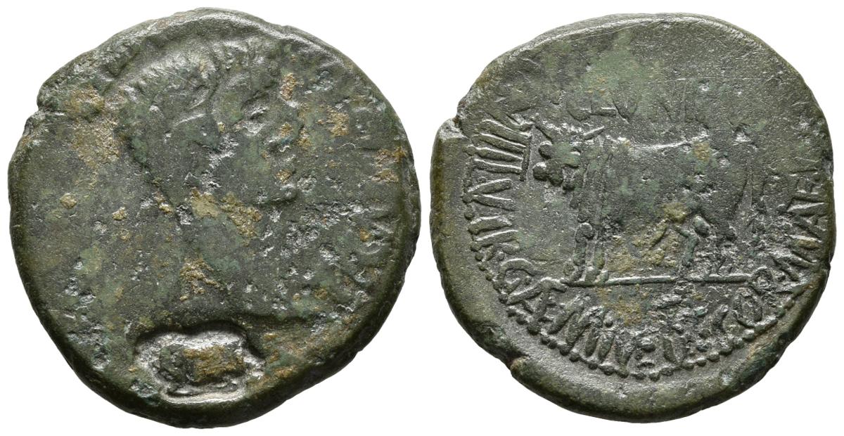 CLUNIA (Coruña del Conde, Burgos). As. (Ae. 13,22g/30mm). 37-41 d.C. (FAB-838). Resello en anverso. BC+/MBC.