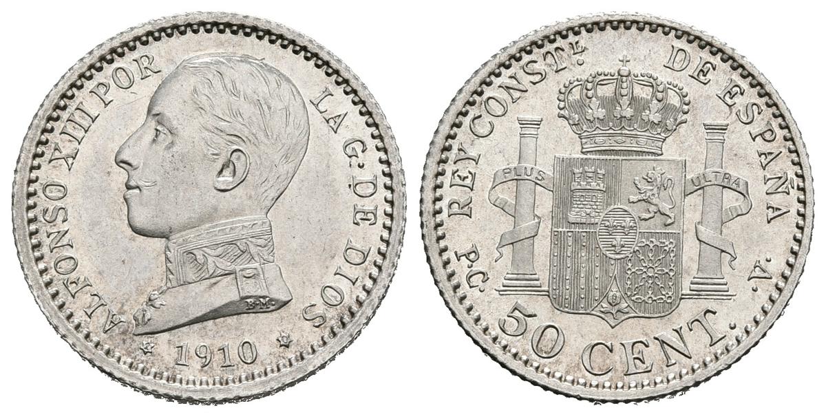 ALFONSO XIII (1885-1931). 50 Céntimos. (Ar. 2,53g/18mm). 1910 *1-0. Madrid PCV. (Cal-2019-48). SC. Brillo original.