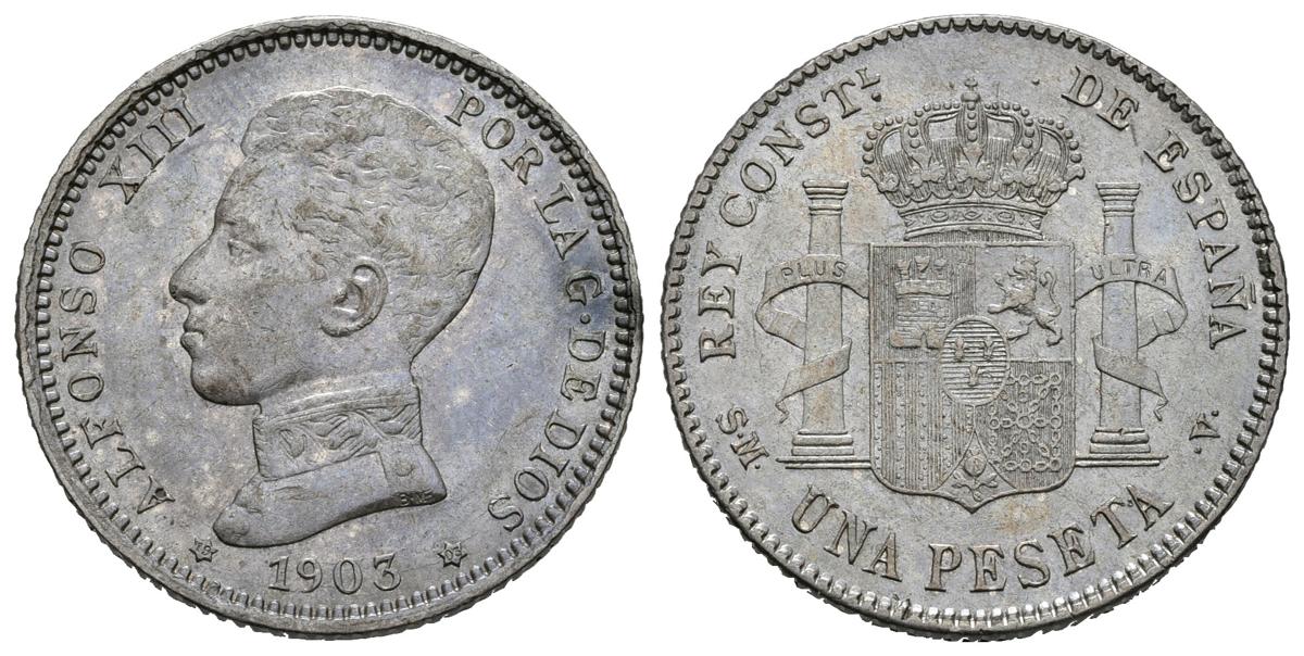 ALFONSO XIII (1885-1931). 1 Peseta. (Ar. 4,93g/23mm). 1903 *19-03. Madrid SMV. (Cal-2019-67). EBC. Preciosa pátina oscura.