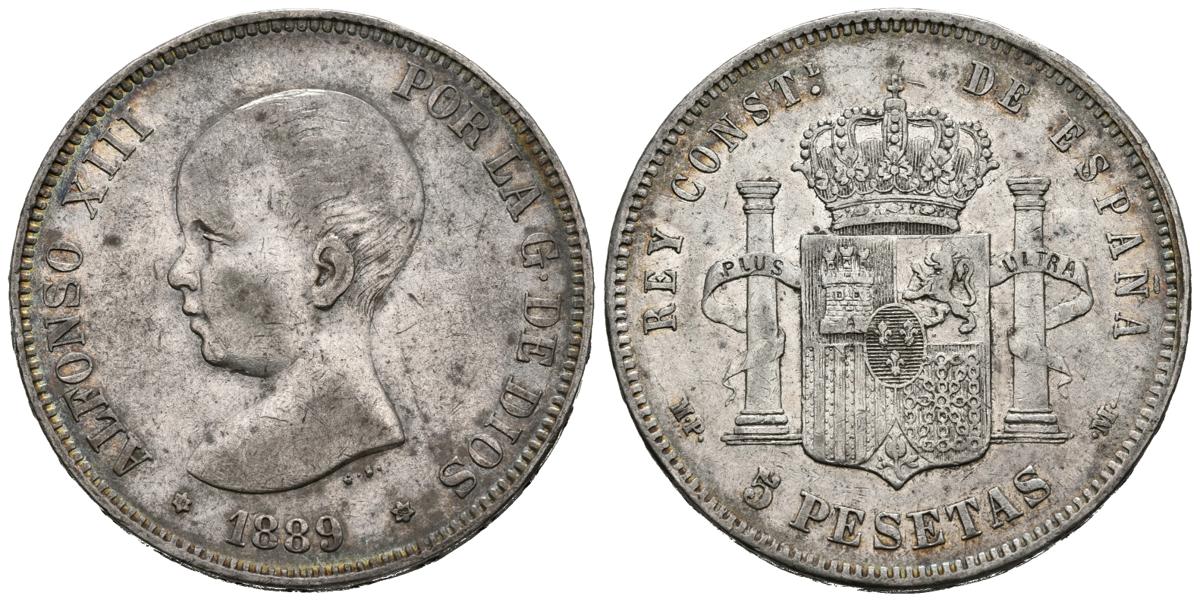 ALFONSO XIII (1885-1931). 5 Pesetas. (Ar. 24,95g/38mm). 1889 *18-89. Madrid MPM. (Cal-2019-93). MBC/MBC+.