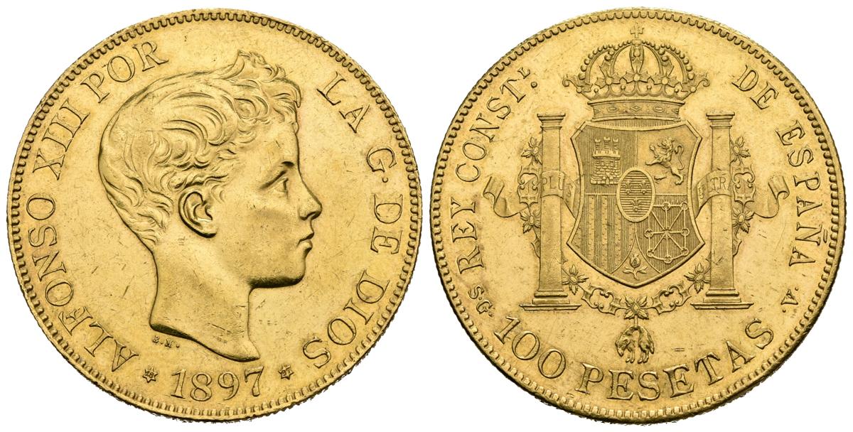 ALFONSO XIII (1885-1931). 100 Pesetas. (Au. 32,30g/35mm). 1897 *18-97. Madrid SGV. (Cal-2019-119). EBC+. Precioso ejemplar.