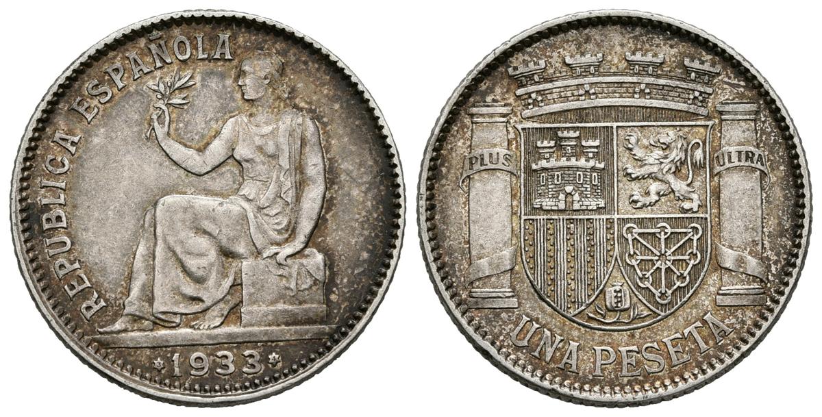 REPÚBLICA ESPAÑOLA (1931-1939). 1 Peseta (Ar. 5g/23mm). 1933 (*3-*4). Madrid. (Cal-2019-34). MBC+. Bonita pátina.