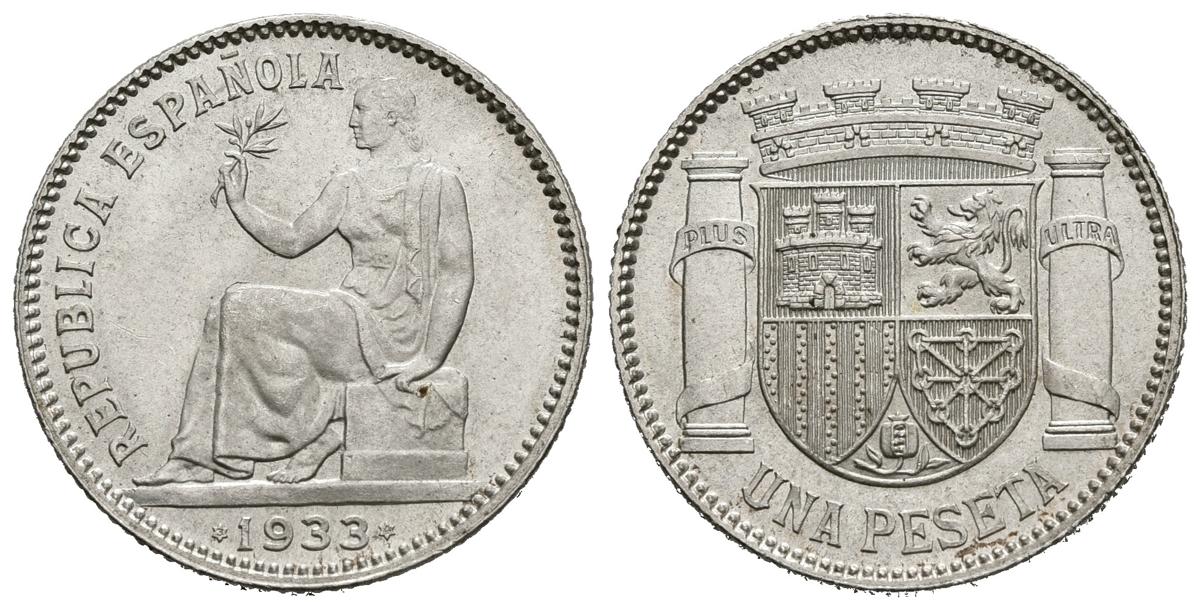 II REPUBLICA (1931-1939). 1 Peseta. (Ar. 5,01g/23,0mm). 1933 (*3-*4). Madrid. (Cal-2019-34). EBC+.