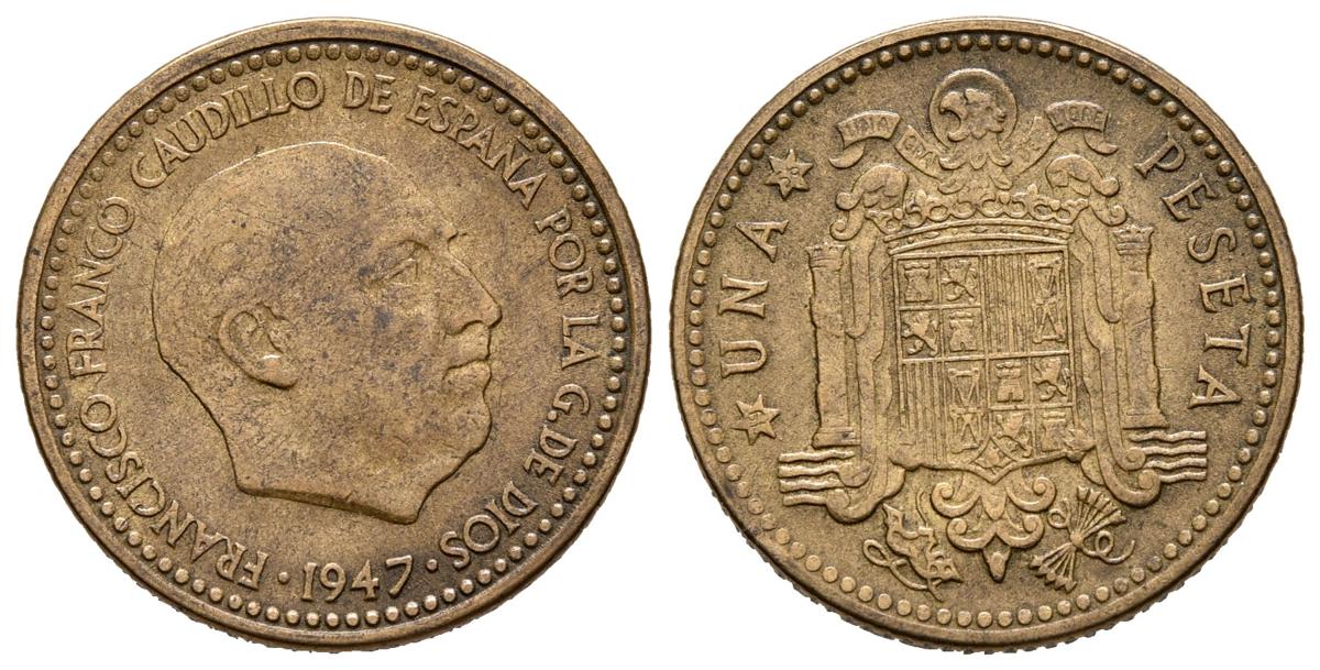 ESTADO ESPAÑOL (1936-1975). 1 Peseta. (AlCu. 3,45g/21mm). 1947 *56. Madrid. (Cal-2019-55). MBC+. Escasa.