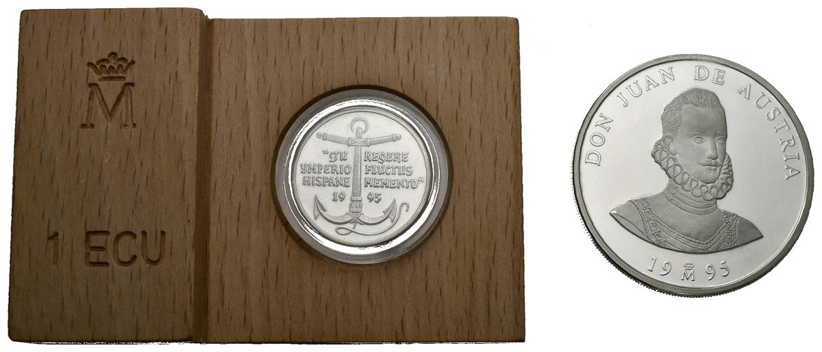 JUAN CARLOS I. Serie de plata conmemorativa con los valores: 1 Ecu y 5 Ecu. 1995. "LA MARINA ESPAÑOLA". PROOF. Presentadas en estuche oficial incluyendo certificado.