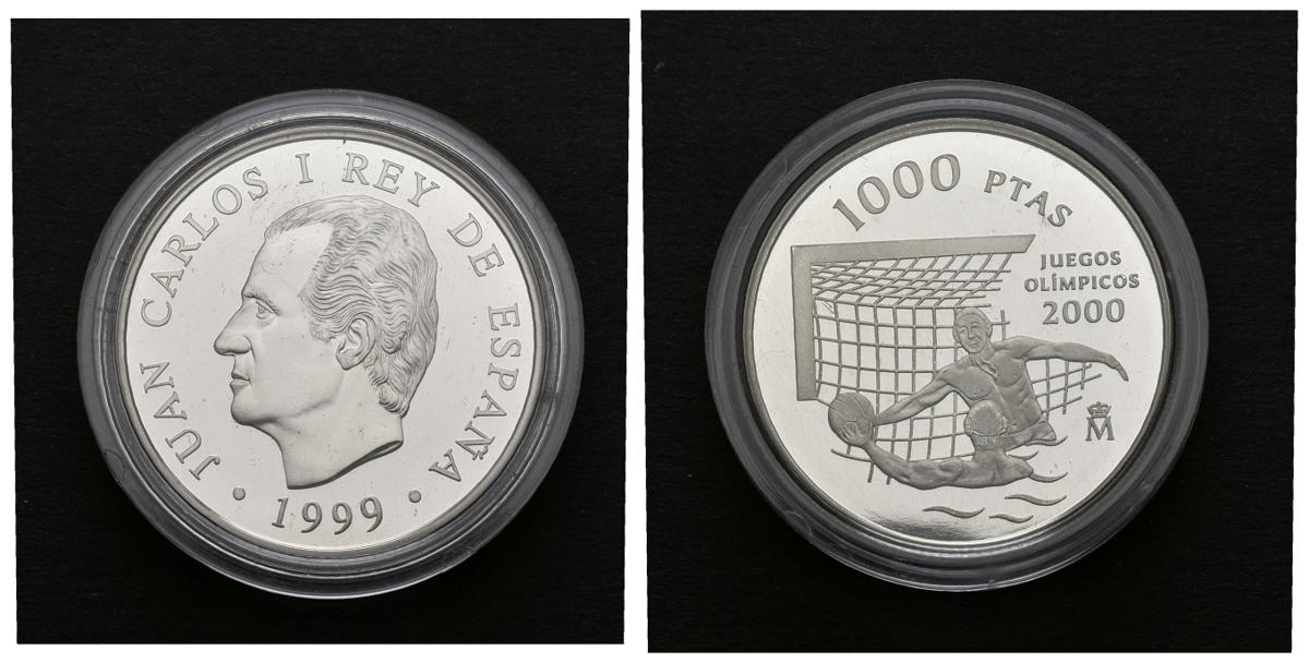 JUAN CARLOS I. 1000 Pesetas. (Ar. 13,50g/33mm). 1999. "JUEGOS OLIMPICOS 2000". PROOF. Presentada en estuche oficial con certificado.