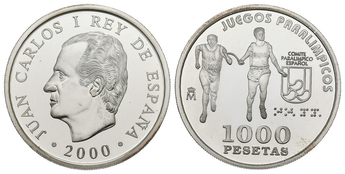 JUAN CARLOS I. 1000 Pesetas. (Ar. 13,50g/33mm). 2000. "JUEGOS PARALIMPICOS 2000 (Ciegos)". PROOF. Presentada en estuche oficial con certificado.